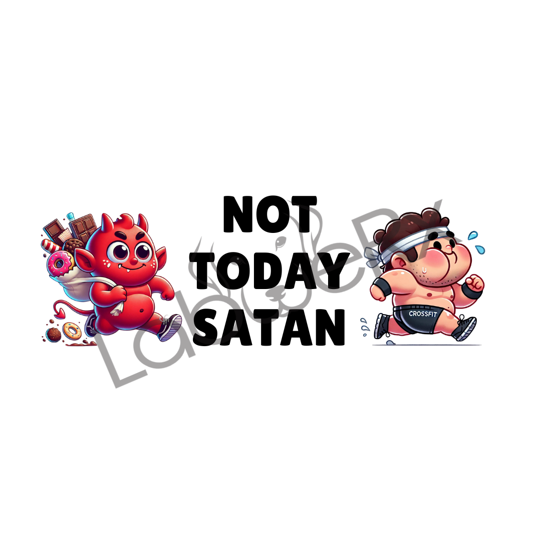 Team NOT TODAY SATAN (MALE) Downloadable Art Vector File. The devil made me do it... is my excuse as I slaughter an entire box of Krispy Kreme glazed... Self-control is difficult which is why my body type is "works out, likes beer and tacos..." I blame the devil.